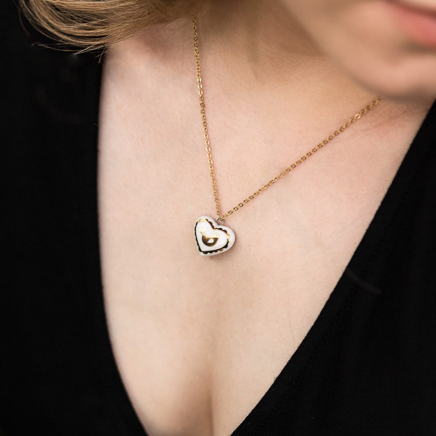 Porcelánový náhrdelník Srdce malé 2 z kolekce Folklor je ručně vyráběný šperk inspirovaný tradiční lidovou kulturou s dekorací 24k zlatem.