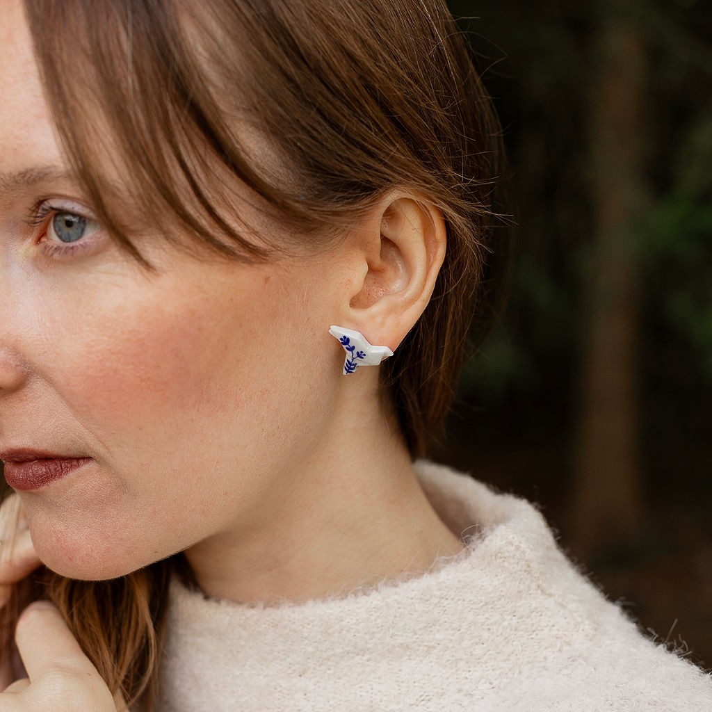 Porcelánové náušnice holubice z kolekce Folklor inspirované tradiční lidovou kulturou.