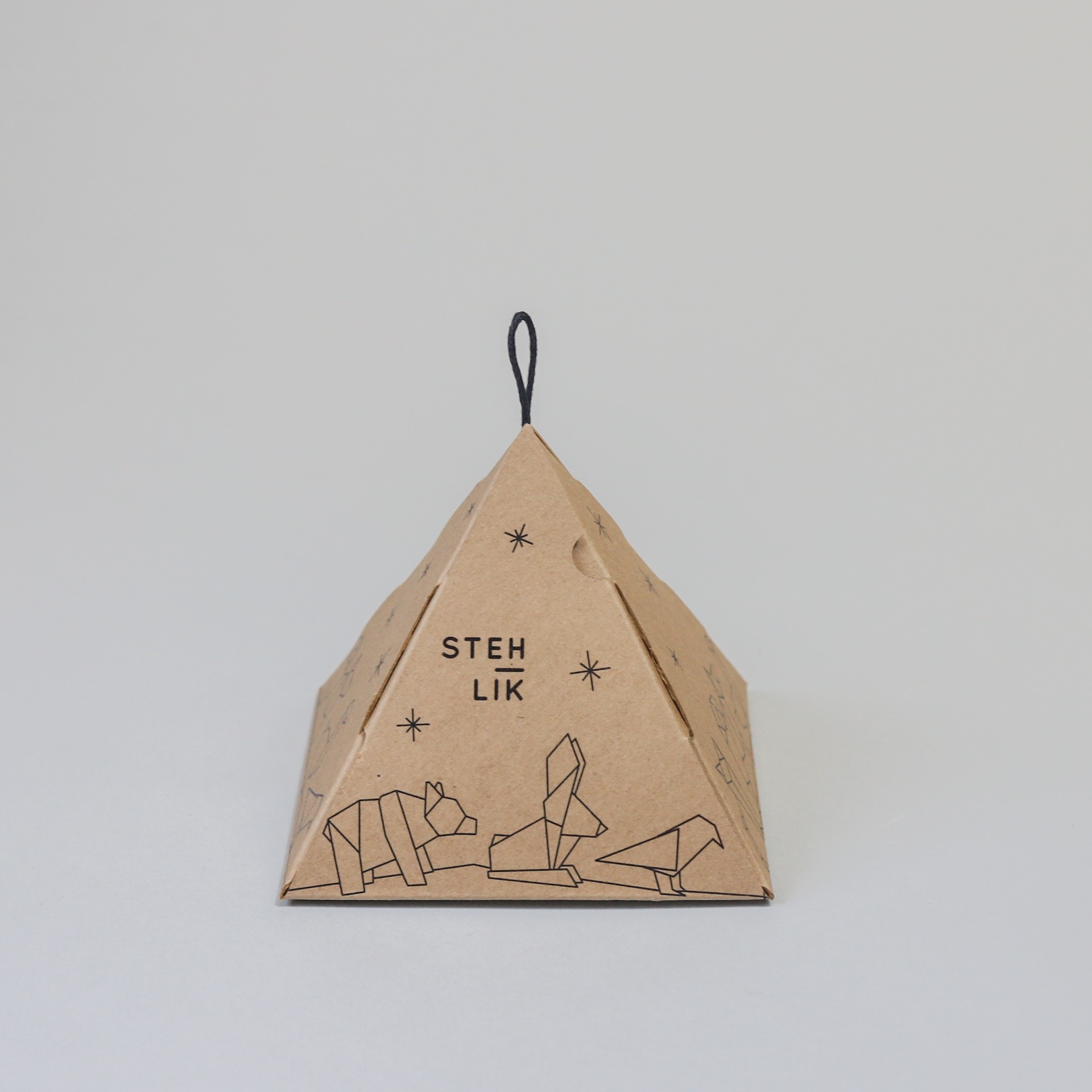 Pyramidová krabička, kterou si můžete doma jednoduše poskládat. Navrhli jsme ji tak, aby byla skladná a tak akorát velká na náš šperk. Můžete ji zavěsit třeba i na větvičku. Krabičku posíláme rozloženou, aby se cestou nepomačkala. Složíte ji během chvilky, bez lepidla... Je to malý detail, který udělá radost už před rozbalením.